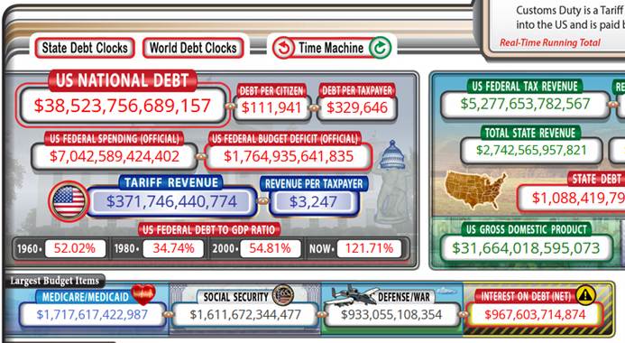 At 25DEC25 9:00am USA National debt ≈ $38,523,756,689,157 ≈ $38,523T